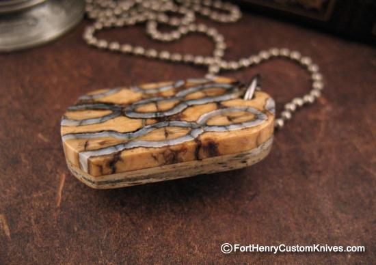 Courtney Turnage has taken his talent for Jewelry Making and combined it with his Father’s Mammoth material supply to make some really unique pieces. This is a New Mini Dog Tag made for those that would like something a bit smaller and unique to wear.