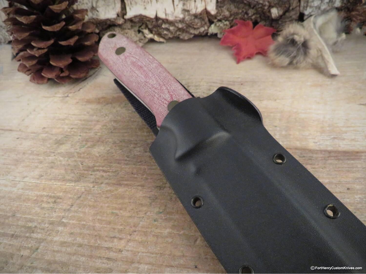 This is a big, tough knife ~ .200 thick D2 steel with a Full Tang, Custom Ordered Bead Blasted Handle with Subtle Custom Dual Red and Black Liners.