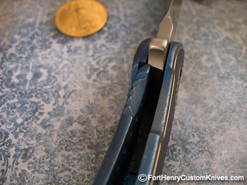 This knife also has the Begg Design Replaceable Lock Bar. The thick Titanium Framelock is Spot on and very secure.