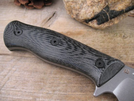 This model has Tough Canvas Micarta handle scales with Deep Linear Grooves for maximum grip comfort and safety.