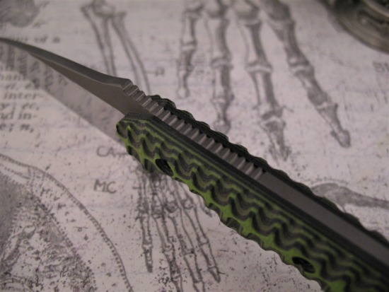 This blade has a Precision Wharncliff Style Grind with Steep Distal Taper for Maximum Penetration and Fast Slicing ability