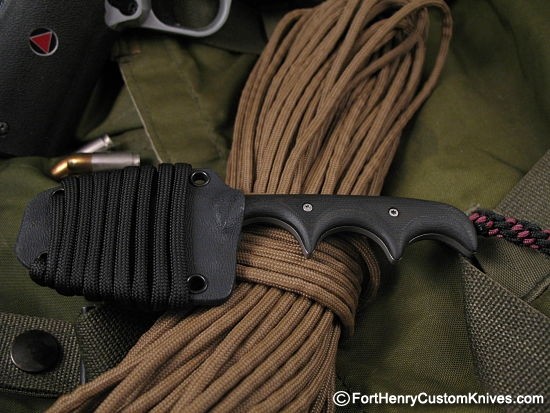 Secure Custom Kydex Neck Sheath with plenty of Paracord Provided, very easy to carry with no noticeable imprint under a T Shirt.