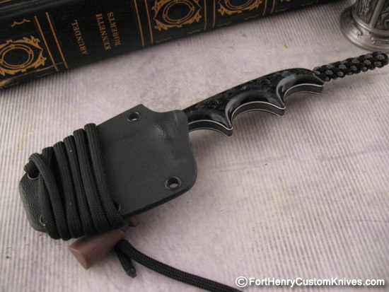 Secure Custom Matching Kydex Neck Sheath with plenty of Paracord and Adjustable keeper, very easy to carry with no noticeable imprint under a T Shirt.