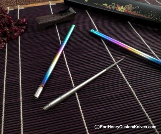 These are Alan’s extremely popular Foltsum TiStix, unique custom two piece Titanium Chop Sticks