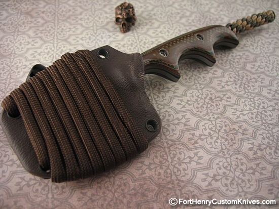 Secure Custom Matching Kydex Neck Sheath with plenty of Paracord and Adjustable keeper, very easy to carry with no noticeable imprint under a T Shirt.
