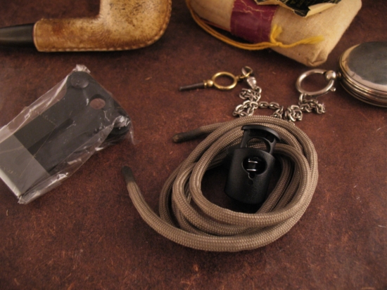 Plenty of Paracord and Adjustable keeper for Neck Wear, very easy to carry with no noticeable imprint under a T Shirt. This is the actual knife that you will receive and it is a beautiful and Discreet Self Defense blade.