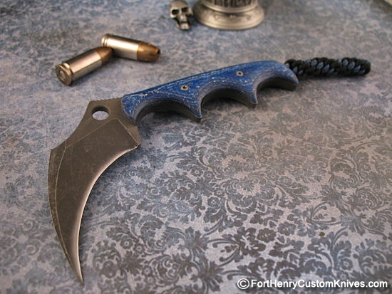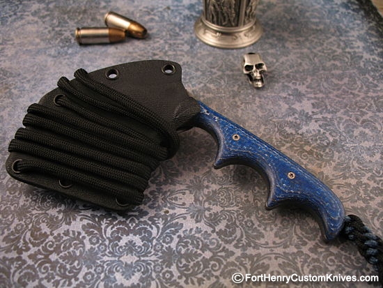 Custom Molded Matching Blue Kydex Belt Sheath with a Paracord Neck Lanyard with Adjustable buckle. Very versatile, ambidextrous carry.