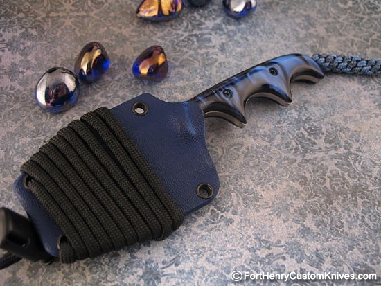 Custom Kydex Neck Sheath with plenty of matching Paracord Provided, very easy to carry with no noticeable imprint under a T Shirt.