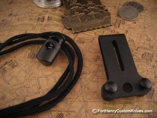 Secure Custom Tan Kydex Neck Sheath with plenty of Paracord Provided, very easy to carry with no noticeable imprint under a T Shirt.