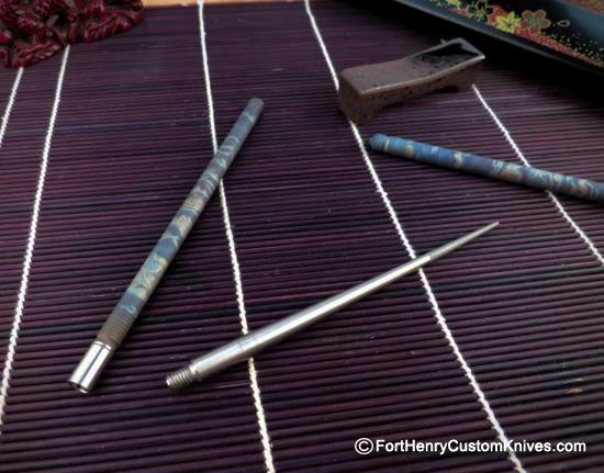 These are Alan’s extremely popular TiStix, unique custom two piece Titanium Chop Sticks