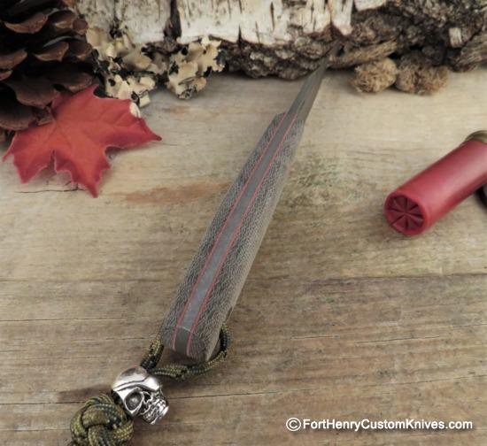 The profile of this knife is immediately recognizable to any student of blade History, this is of course an updated interpretation of the classic Bowie knife. The Blade on this Afonchenko City Bowie has an Acid & Stonewashed Finish with a Near Full Height Hollow Grind and a Long Custom Swedge.
