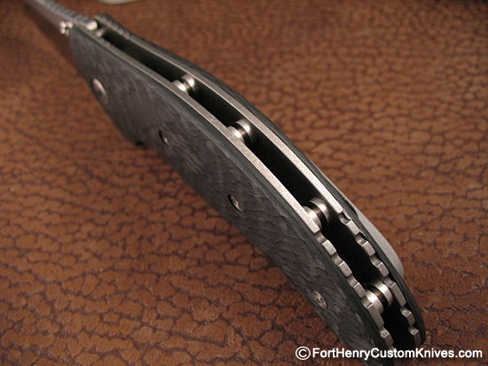 The subtle Orange Peel finish on the thick Titanium Liners really make a great presentation and make this whole knife a Lightweight Powerhouse!
