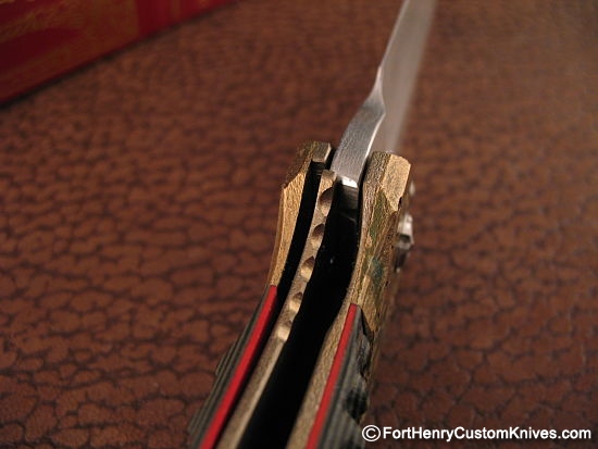 The blade was Hand Ground from Carpenter’s CTS-XHP Super Steel and has an extremely complicated Duplex Grind and a Hand Rubbed finish. Incredible action, the blade glides open smoothly and the lock up is perfect.