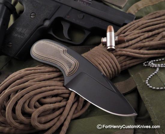 The Shadow features a Wide, Hollow Ground CPM 3V Drop Point Blade that has a Subtle Custom Swedge on the Top ~ all Exposed Surfaces have been given a Deep Black Cerakote for Maximum Protection