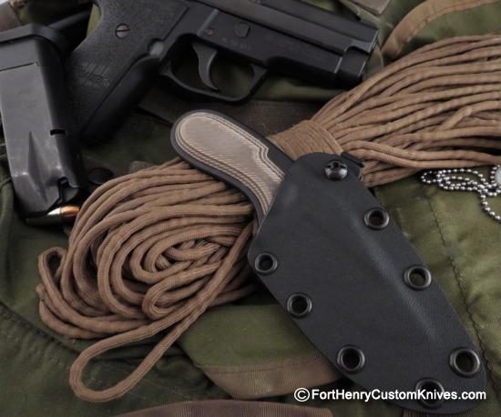 A tough useful blade that will be easily Concealed and ready for use. Wonderful ergonomics in both the handle and the blade. This knife comes complete with a Custom Molded Kydex Sheath