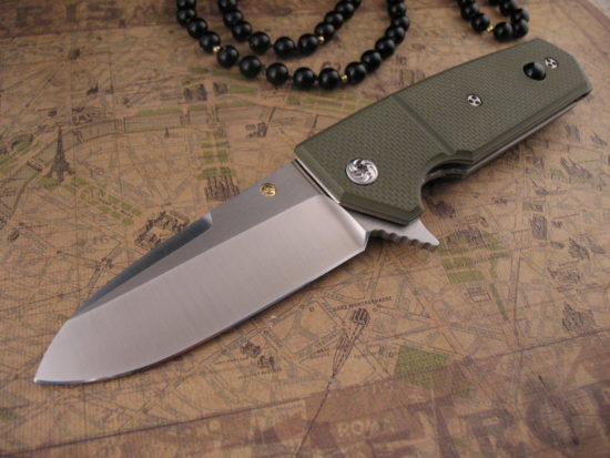 This is Allen’s tough TANK model. OD Green G-10 scales have a Stippled texture that insure a Positive Grip even in adverse situations. Allen has milled the G-10 in the front to have a Bolster like appearance.