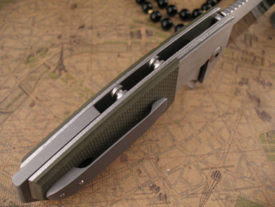 The exterior of the Titanium Lock side has been Satin finished and looks like a Bolster.