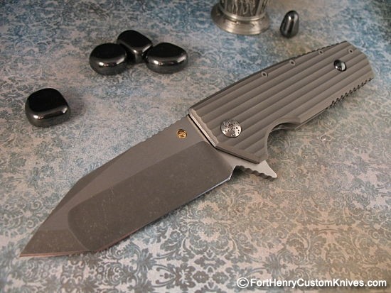 The combination of the Glass Bead Blasting and the Linear Milled Textured of the Solid Ti Frame give this beefy knife a very secure feel!
