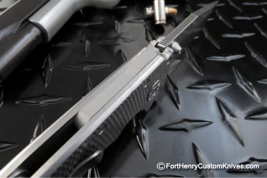 The Blade opens extremely smoothly and due to it’s size, this is a knife that will take on ANY chore as well as excel at everyday cutting tasks. Andrew’s New Unique Locking mechanism, called the Shark Lock, actually rotates the Lock Bar upward in the front to release.