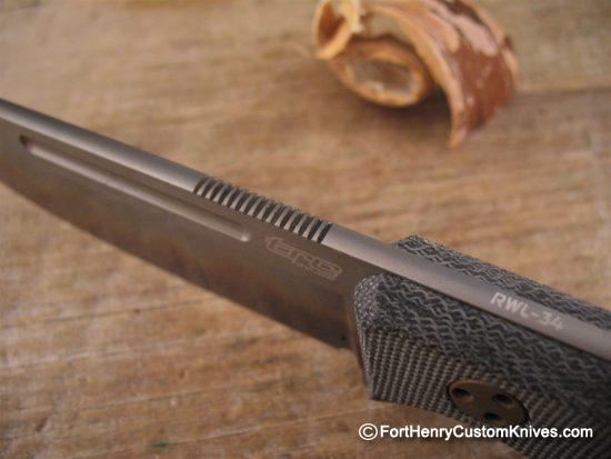 This is a rugged no-nonsense design ~ the RWL34 Blade has Andrius’ tough Apocalyptic finish. This unique, colorful finish is a visible representation of the Heat Treatment, leaving every knife a little different in appearance. RWL34 is a Premium Powder Metallurgy cutlery steel manufactured by Damasteel AB