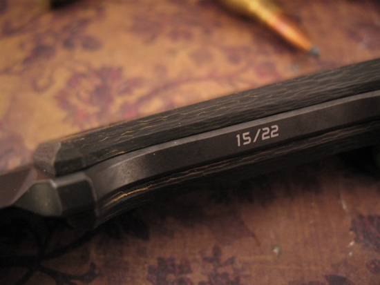 This knife is Limited to 22 Pieces Total ~ you may select one of the Following Serial Numbers from the Drop Down Menu – the knife in each of the Drop Down Pictures is the ACTUAL Knife for that Serial Number