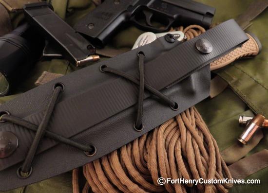 I want to say that I am very impressed with the thick, well fitting Custom Kydex Belt sheath that comes with this knife.