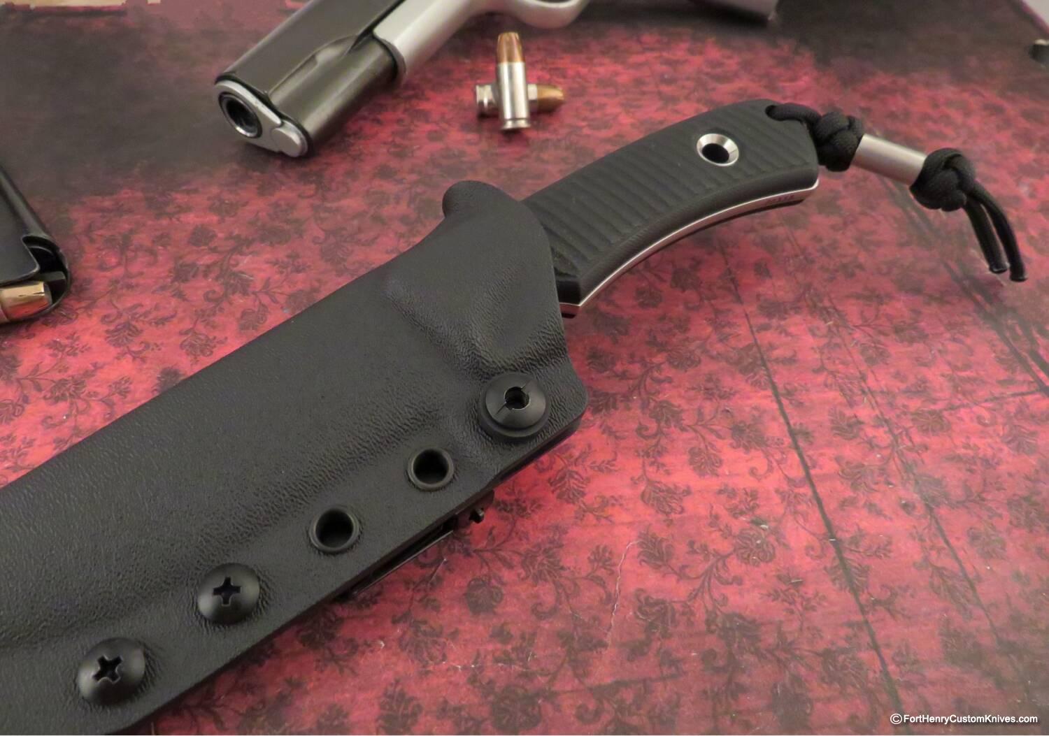 I want to say that I am very impressed with the thick, well fitting Custom Kydex Belt sheath that comes with this knife. A Metal, Adjustable UltiClip Belt Clip is already attached.