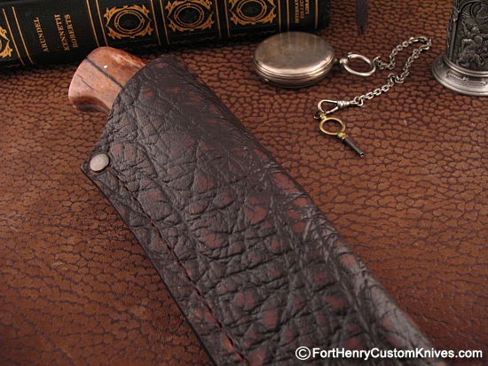 This knife comes with an exotic Cape Buffalo Leather pouch sheath built for Right Hand belt carry.