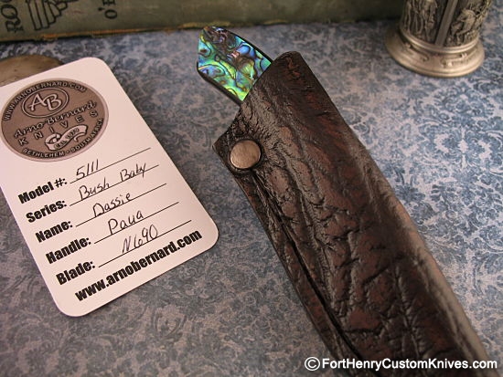 This knife comes with an exotic Cape Buffalo Leather pouch sheath built for Right Hand belt carry. COA is Included.