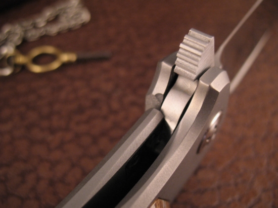 Precision made and Rock Solid in all respects! The Open Construction of the Frame and the Titanium Backspacer help to keep the weight down for such a Large knife.