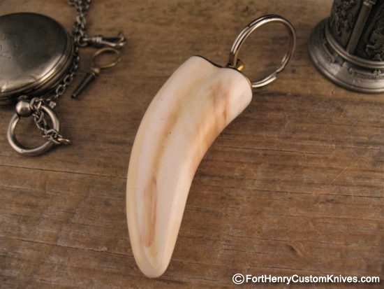 The top features a Brass Cap and Brass Post that is Epoxied deep into the Tusk and a Spiral Key attachment is then added to the Brass post.