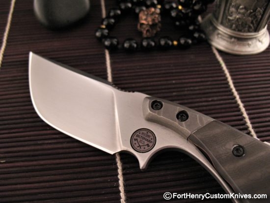 The Blade was Flat Ground from High End CPM 3V.  It has a Labor Intensive Hand Rubbed & Acid Etched finish with an Integrated Thumb Recess in the spine.