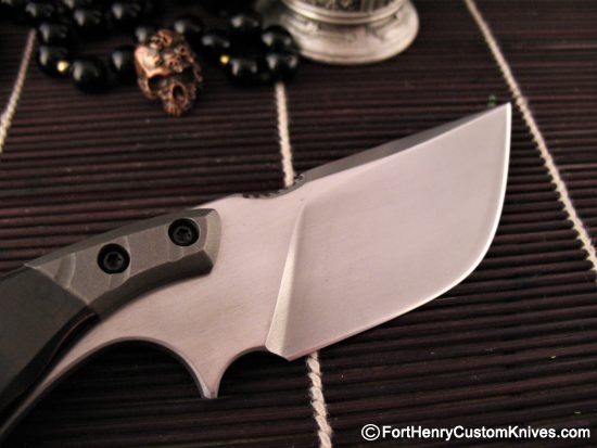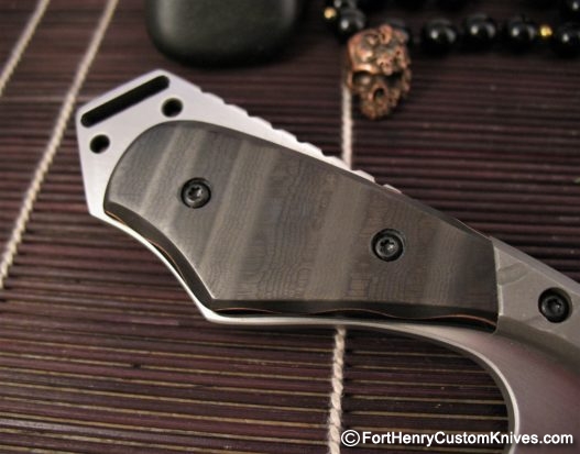 The knife is held together with torx Screws, it has Textured Titanium Bolsters and a Titanium Coin Inlay. The Ti Emblem has a Dark Anodized Finish.