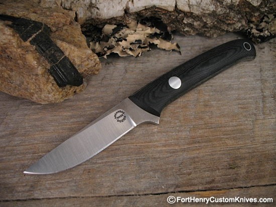 A very simple design made from the best steel ~ Dozier D2. The handle is large enough for a full grip, the blade has plenty of edge and just a slight belly, would easily double as a nice Bird N Trout. Secure grip due to the large integral forward finger guard.