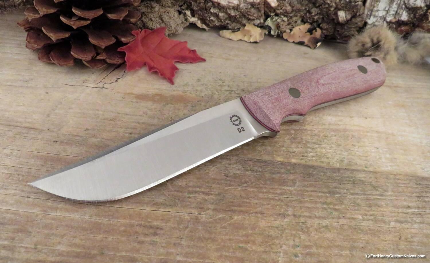 This is a big, tough knife ~ .200 thick D2 steel with a Full Tang, Custom Ordered Bead Blasted Handle with Subtle Custom Dual Red and Black Liners.