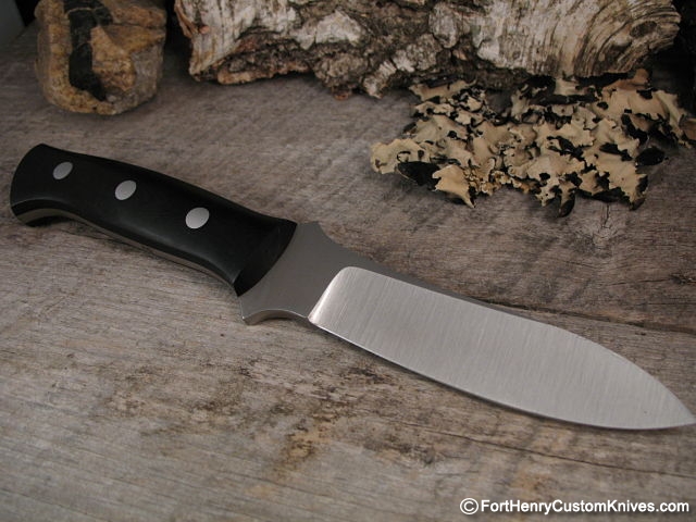 A very tough knife indeed. Both upper and lower integral guards, 3/16" thick D2 steel with a Full Tang. Expertly contoured handle for maximum grip.