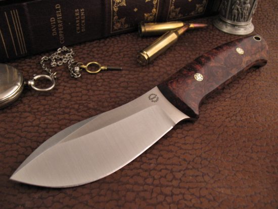 The wide Skinning blade is 1 1/4″ wide with a Custom Swedge near the tip.