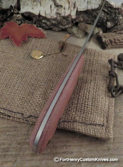 This Dozier filet is a Full Tang knife with Contoured Tough Natural Canvas Micarta with Brass Blind Bolts