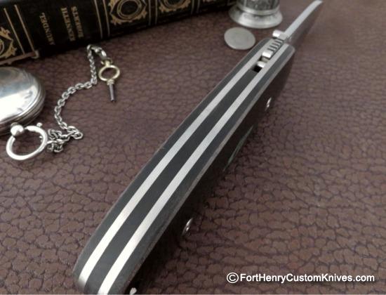 This Dozier XL Folding Hunter has thick, Satin Finished Titanium liners and a Full Length G-10 backspacer.