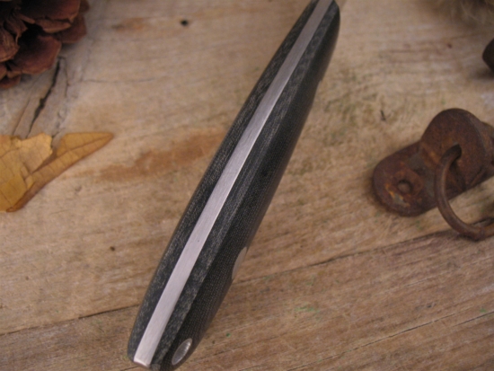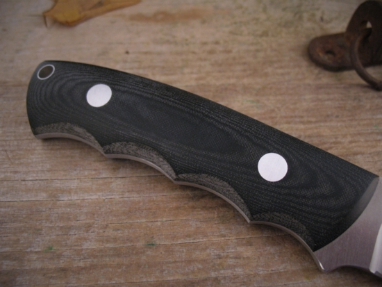This Model has Full Finger grooves like the Pro-Skinner and Tough Black Linen Micarta Handle Scales that have a nice Wood Like Grain.