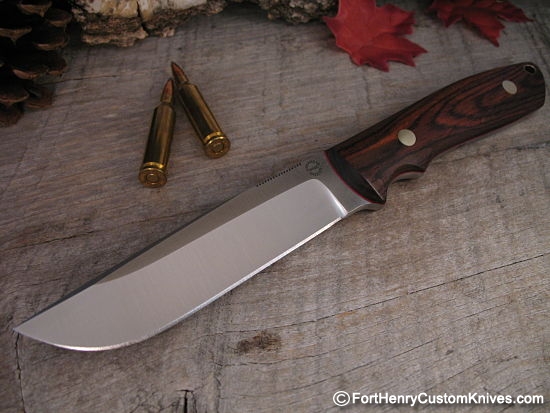 This is a big, tough knife ~ .200 thick D2 steel with a Full Tang. This one was custom ordered with beautiful Cocobolo Handles that are well matched and both sides have beautiful grain and color. This knife will be able to tackle any task on any size game!