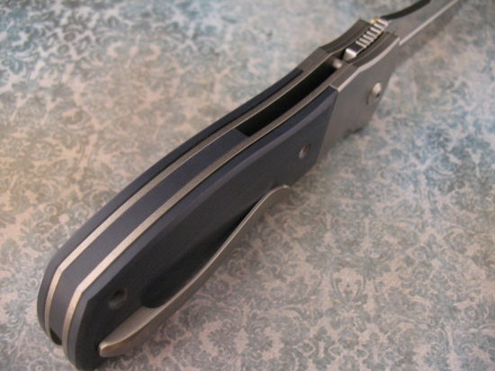 The Liners are also Titanium with a light texture. The Thick Lock is tight and secure, no play whatsoever.