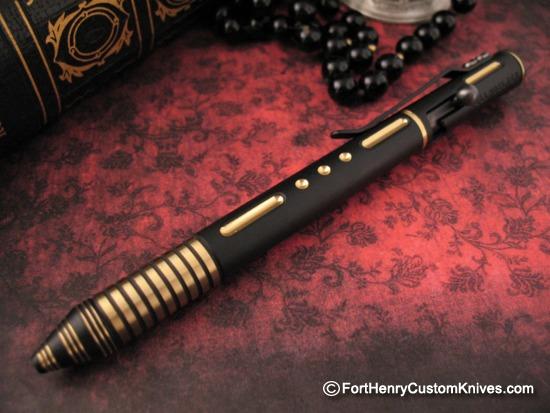 This one was just one of a few with this custom finish. This unique Bolt Action Pen – the Barrel, Clip and Bolt are precision machined in the U.S. from Solid Titanium