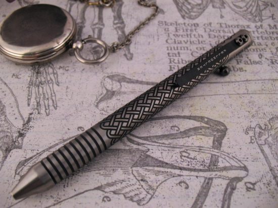 This special version has Deep Custom Engraving with PVD Coating inside the Engraved Areas on the Solid Titanium Barrel – the Engraving is Called Celtic Cross