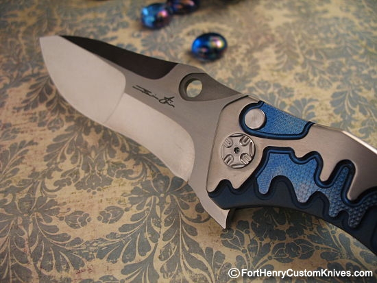 The Flipping action of this knife is incredibly smooth due to Brian’s Needle Thrust Bearing system. Also, Brian has given this blade a Very Interesting Two Tone Blade Finish – the blade was Stonewashed and then Mirror Polished!