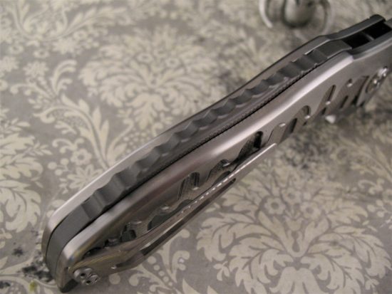 The ergonomics of this knife are wonderful, a Full Grip without being Overly Large with gorgeous “Three Layer” Drip Contouring, each layer of the Titanium frame has a different surface Texture!