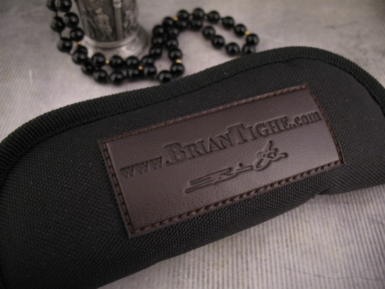 This knife comes in a Black Zippered pouch with Faux Leather Tag that has Brian’s Logo stamped onto it.
