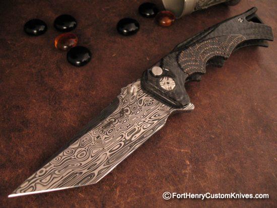 Brian Tighe crafted this Larger, Robust Fighter with some incredible upgrades including a Incredible a Beautiful Damasteel Blade.