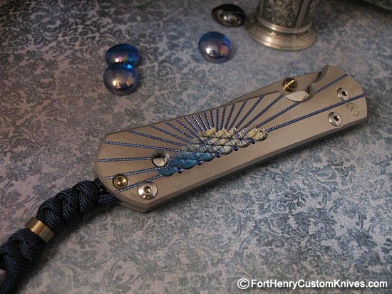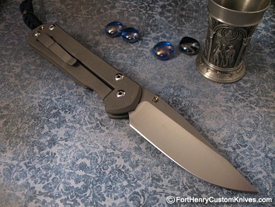 Titanium pocket clip mounted for tip up carry. File worked thumb rest for increased handling. Light for it’s size, due to the titanium construction. Very strong integral locking mechanism that Chris Reeve pioneered.