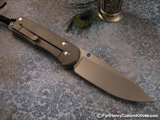 Titanium pocket clip mounted for tip up carry. File worked thumb rest for increased handling. Light for it’s size, due to the titanium construction. Very strong integral locking mechanism that Chris Reeve pioneered.